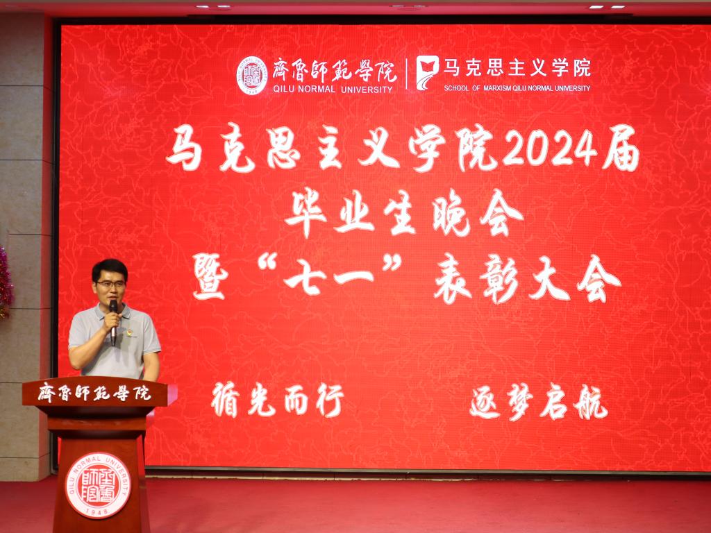 6月20日,马克思主义学院在章丘校区第一学术报告厅举行“循光而行 逐梦启航”2024届毕业生晚会暨“七一”表彰会。学校党委副书记赵敏,党委委员、宣传部部长孙磊出席活动。马克思主义学院教授刘振光、党委书记郭百灵、院长赵立峰、党委副书记毛雯、办公室主任张纪昌、团总支书记王雅文、教学秘书杨同飞、教师代表陈伟以及马克思主义学院全体学生共同观看演出。