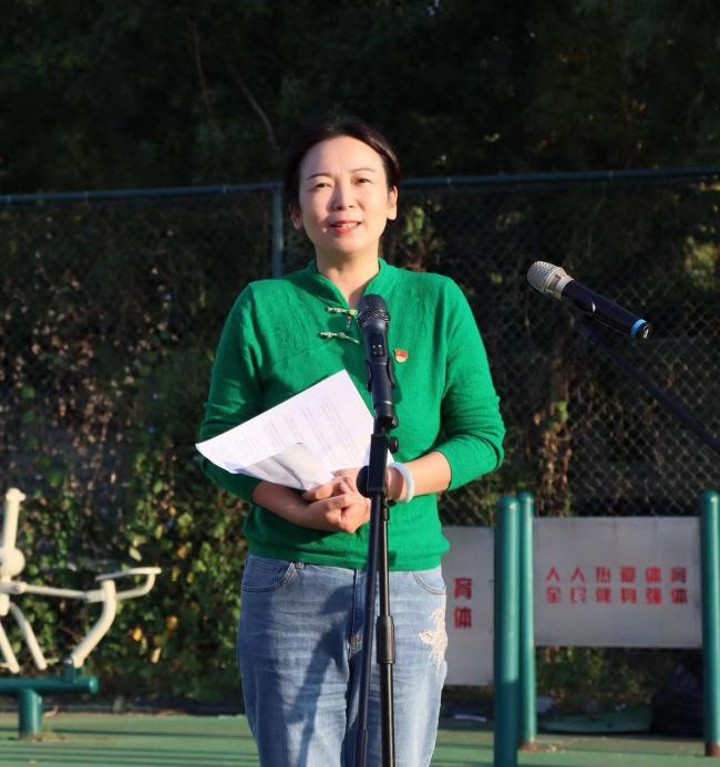 郭百灵在国旗下为大家上了一堂爱党爱国爱校的思政课。她激励同学们一是要坚定理想信念,以拼搏书写人生之路。心有所信,方能行远,立师德,正师风,强师能,在常修常炼中坚定理想信念,做好“眼前小事”,争做躬耕教坛的思政教师;二是要坚持创新学习,以所学服务国家所需。文理融通、兼容并蓄、创新学习、批判思考,把学习当成一种生活态度、一种工作责任、一种精神追求;三是要保持梦想热爱,以奋斗擦亮青春底色。锤炼本领、探寻新知,强健体魄。在国庆这个特殊的日子里,铭记历史,展望未来,坚定信念,把握时代脉搏,立志成才,做新时代的“四有”好老师,为实现中国梦贡献自己的智慧和力量。