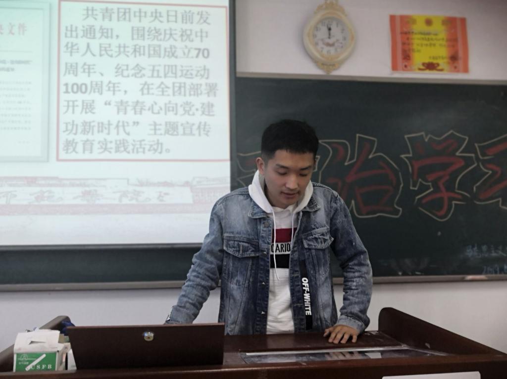 共青团中央日前发出通知,围绕庆祝中华人民共和国成立70周年、纪念五四运动100周年,在全团部署开展“青春心向党·建功新时代”主题宣传教育实践活动。为激励同学们向实现中华民族伟大复兴的中国梦而矢志奋斗。2019年4月17日,马克思主义学院2018级思想政治教育本科一班在二号教学楼A311教室举办政治学习活动。本次活动由马克思主义学院2018级思想政治教育本科一班全体学生参加。