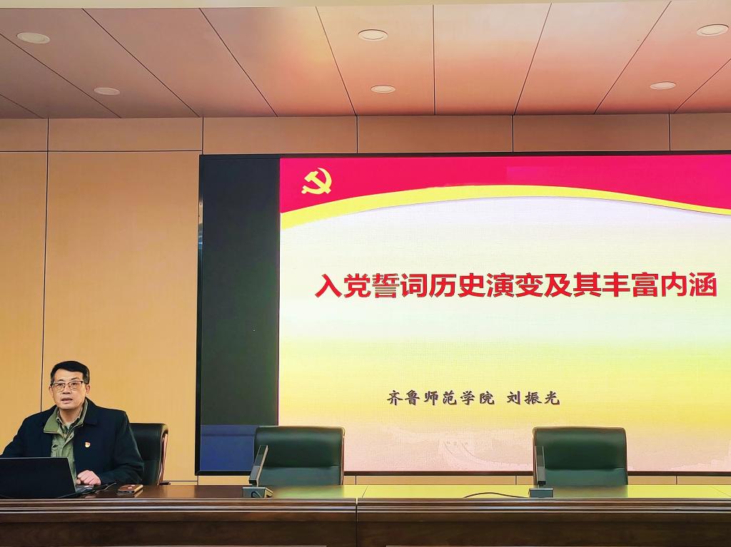 活动最后,刘振光教授以《入党誓词历史演变及其丰富内涵》为题,为全体党员上了一堂生动党课。他从入党誓词演变过程、入党誓词的内涵及如何践行入党誓词三个方面进行解读,教育引导学生党员、入党积极分子践行入党誓词,胸怀共产主义远大理想,牢记全心全意为人民服务宗旨,在学习工作中发挥党员的先锋模范作用,争当成才表率先锋,争做新时代好青年。