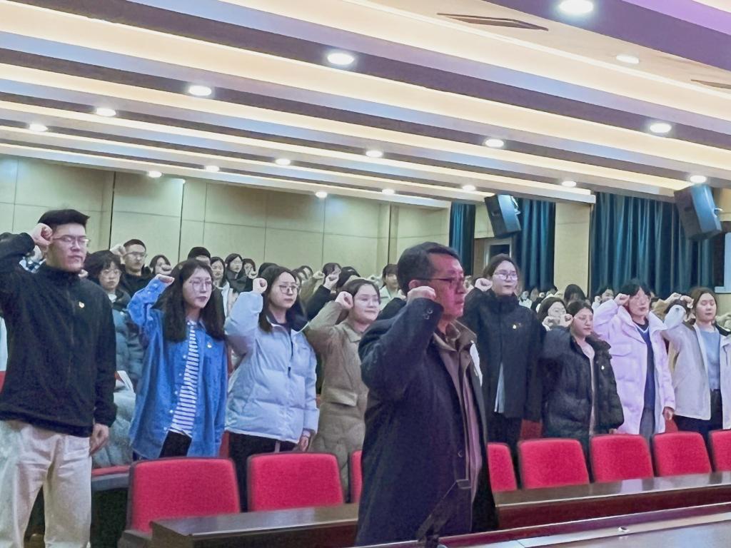 宣誓仪式在庄严的《国际歌》中拉开帷幕。刘振光教授为新一批预备党员佩戴党员徽章,并带领大家面向鲜红的党旗庄严宣誓。“我志愿加入中国共产党,拥护党的纲领……随时准备为党和人民牺牲一切,永不叛党”。铮铮誓言,响亮有力,既表达了学生党员对党的敬仰与忠诚,也表达了为党的事业奋斗终身的坚定决心。
