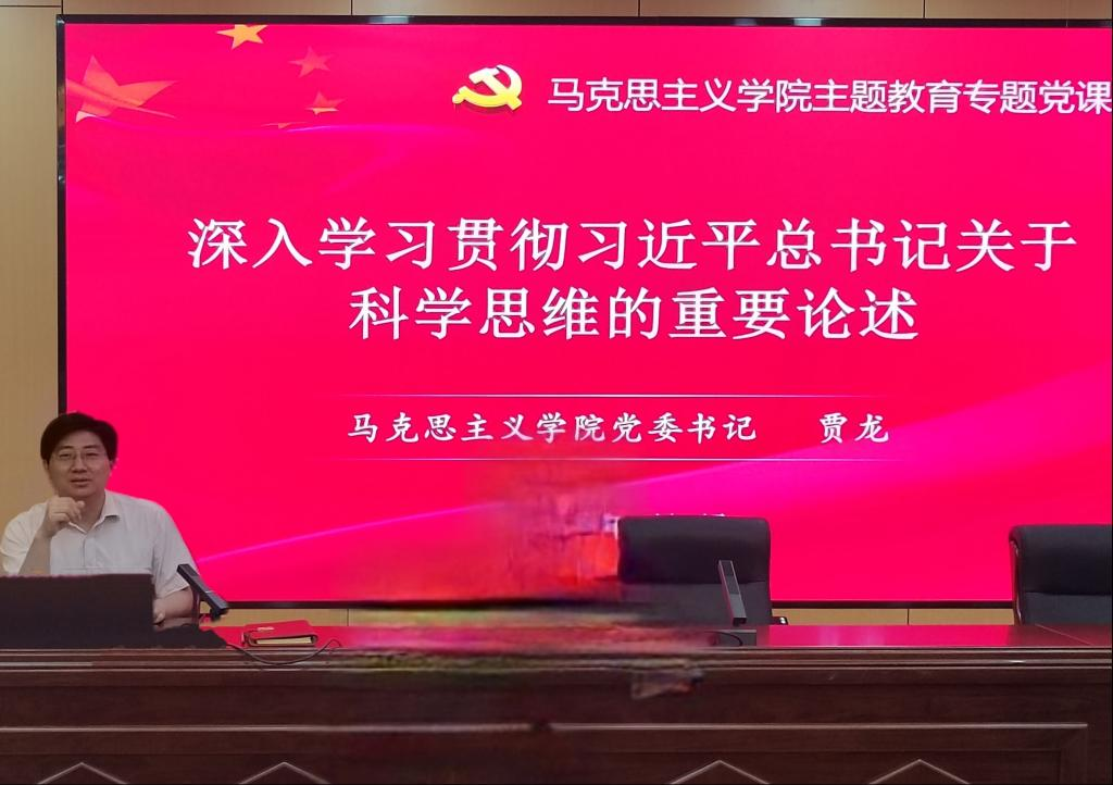 贾龙为同学们讲授了“习近平总书记关于科学思维的重要论述”专题党课,从为什么要学习习近平总书记关于科学思维的重要论述、科学思维重要论述的构成、科学思维之间的相互关系三个方面进行了讲解,并结合学生学习、生活实际,聚焦学生党员如何亮身份、作表率、见行动,教育学生学会运用“七种科学思维”认识和把握大变局,准确识变、科学应变、主动求变,为实现中华民族伟大复兴贡献力量,绽放青春绚丽之花。