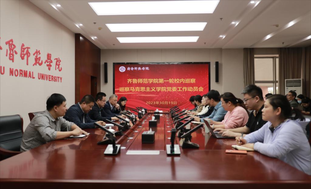 根据学校党委第一轮校内巡察工作部署安排,10月19日下午,第一巡察组巡察马克思主义学院党委工作动员会在图书馆第二会议室召开。学校党委校内巡察领导小组副组长、纪委书记、省监委驻齐鲁师范学院监察专员高明辉,学校党委第一巡察组全体成员、马克思主义学院领导班子成员、党委委员、各党支部书记、全体教师参加会议。马克思主义学院党委书记贾龙主持会议。